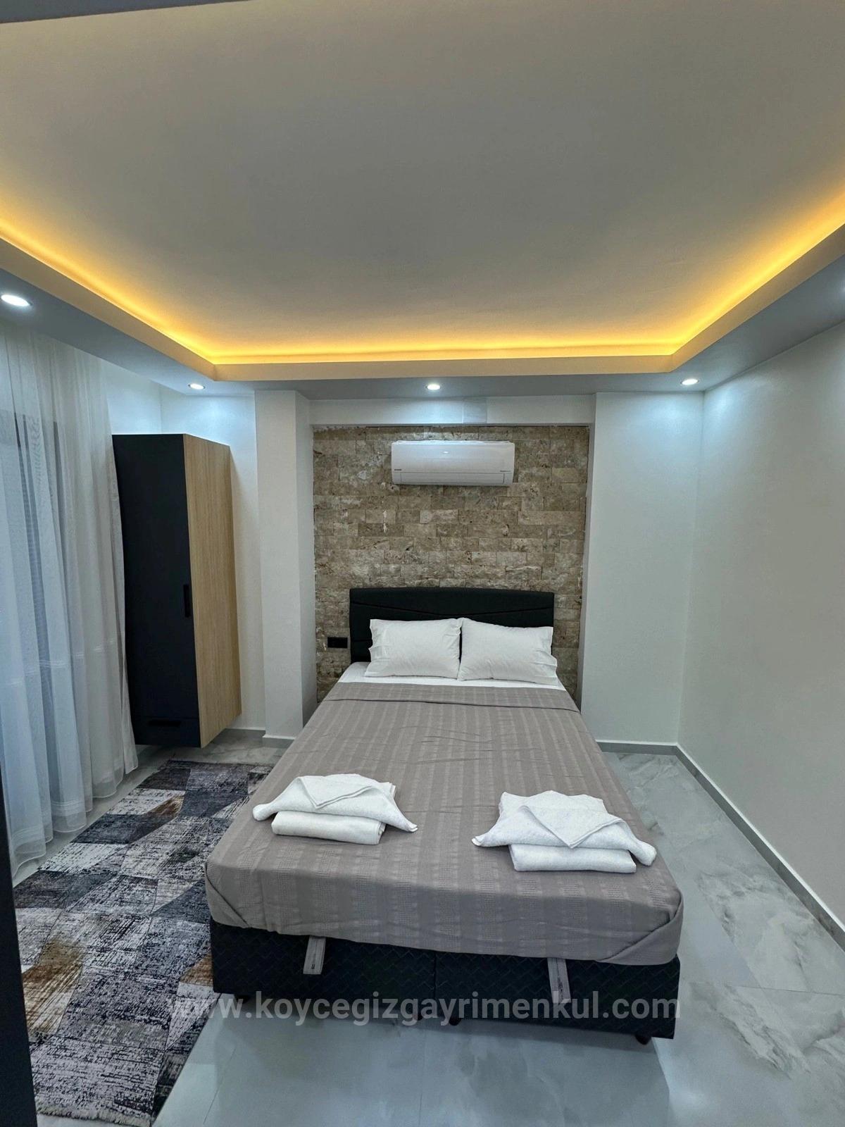 Auf dem gesamten Grundstück sind Orangenbäume angepflanzt. Ein tiefer artesischer Brunnen steht zur Bewässerung zur Verfügung. Die Villa liegt 4 km vom Zentrum von Dalyan, 15 km vom Strand von Iztuzu, 2 km von Einkaufsmöglichkeiten und 25 km vom Flughafen Dalaman entfernt und bietet einen herrlichen Blick auf Natur und Wald. Preis: 39.000.000 TL