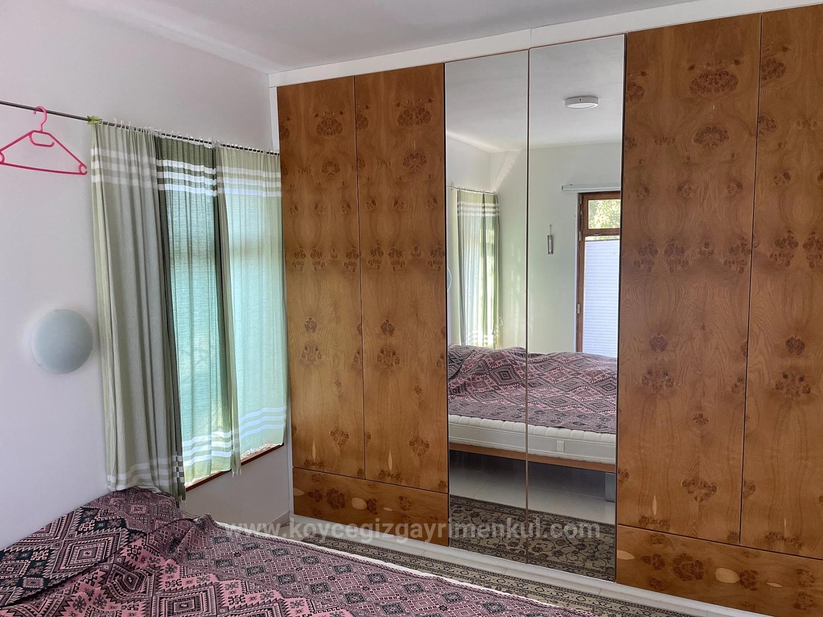 In Eskiköy, innerhalb des Ortskerns, stehen zwei freistehende Einfamilienhäuser auf einem 2882 m² großen Grundstück zum Verkauf. Jedes Haus verfügt über ein Wohnzimmer mit offener Küche, zwei Schlafzimmer und ein Badezimmer en suite. Die Häuser bieten jeweils einen privaten Außenpool und einen schön angelegten Garten. Die Umgebung ist gepflegt. Die Häuser liegen 5 km von Dalyan, 5 km von Ortaca, 15 km vom Strand von Iztuzu und 25 km vom Flughafen entfernt und bieten einen herrlichen Blick auf Natur und Wald. Preis: 460.000 Euro