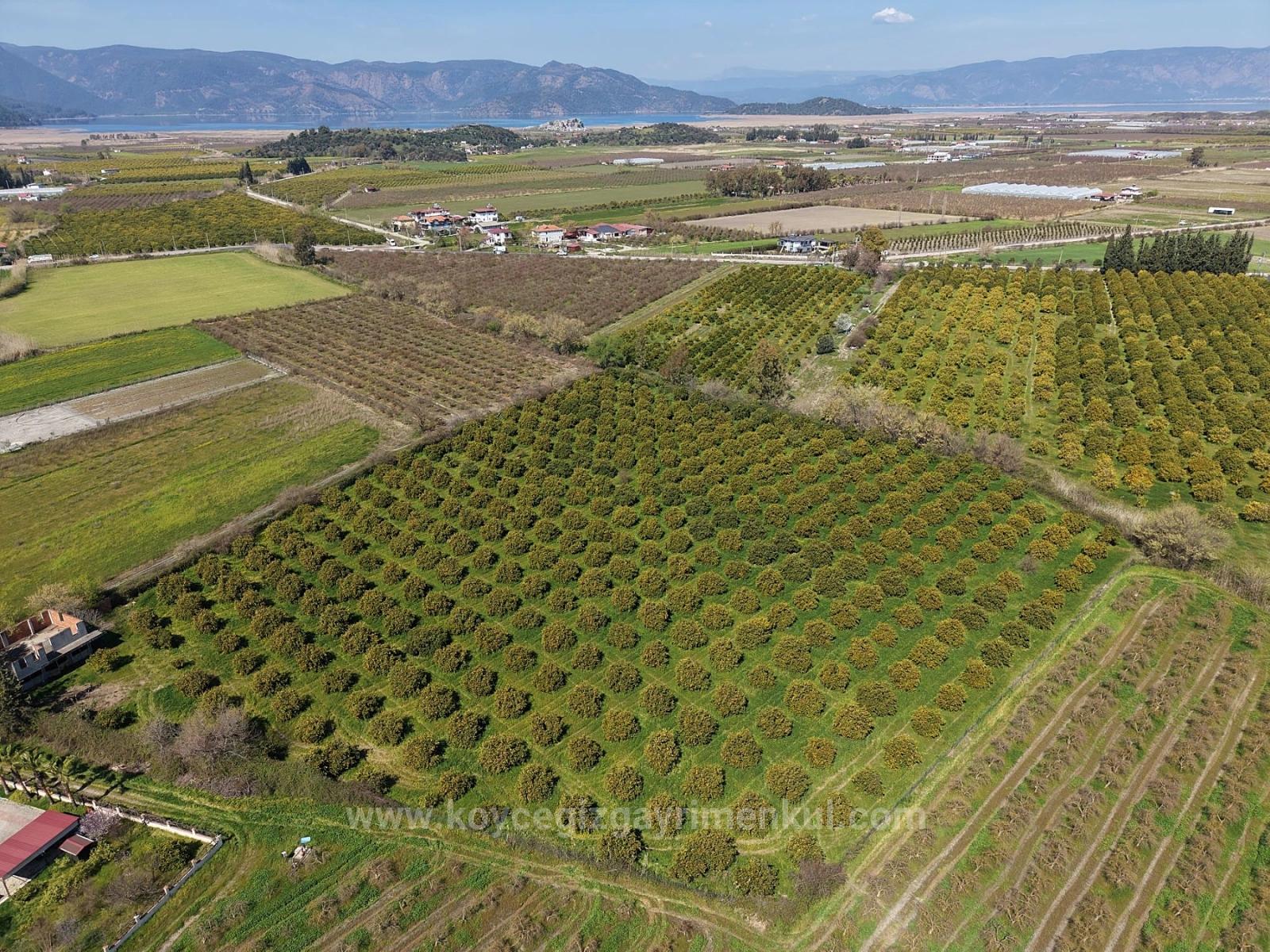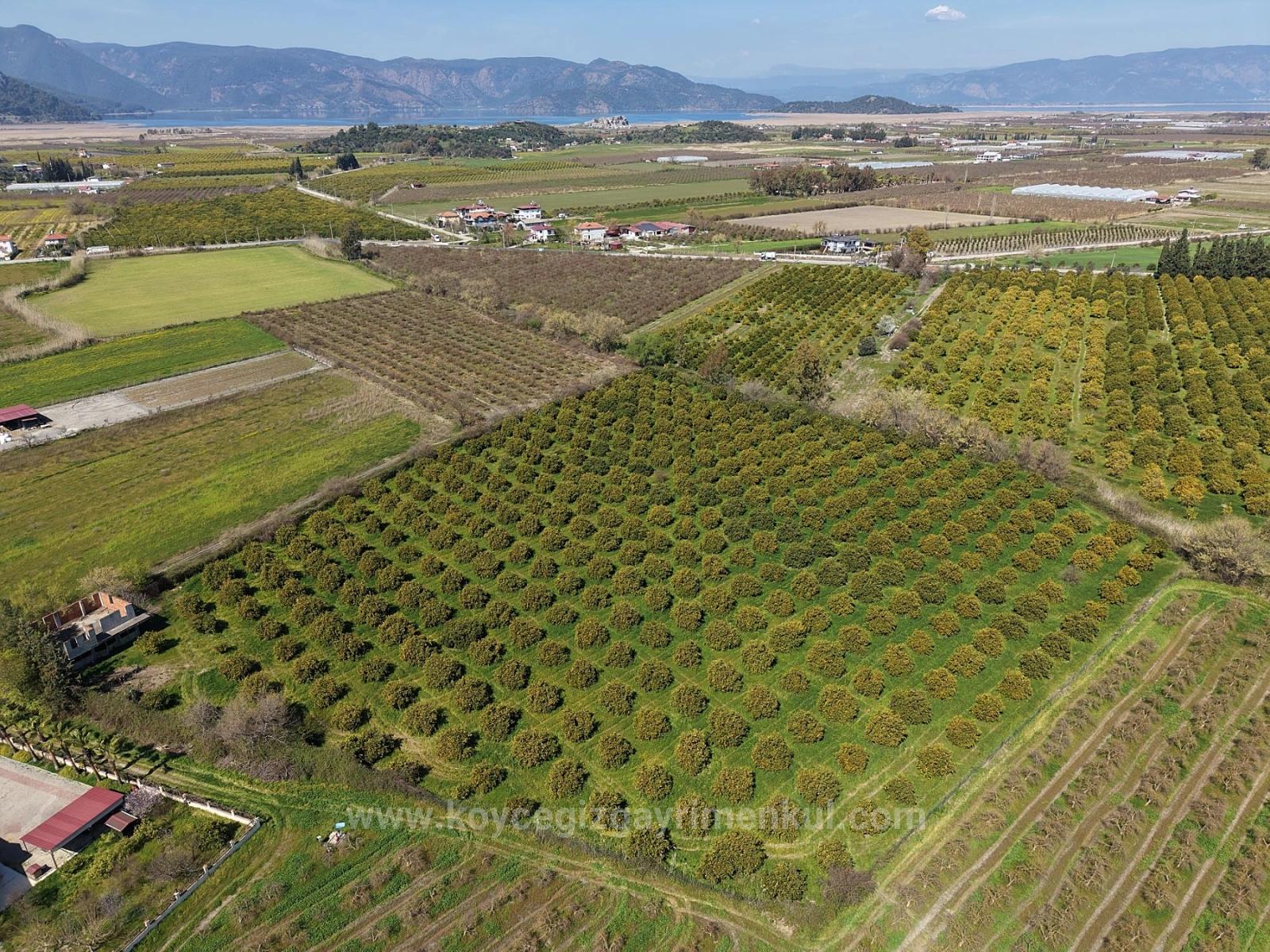 17.550m2 citrus garden close to Dalyan center is for sale. There is a building with building registration certificate of approximately 200m2. There are no road, water, electricity or telephone problems. Annual fruit yield is close to 60-70 tons. There are constructions around it. It can be arranged with a building renovation permit. The price of the garden, which is 2 km from Dalyan center, 12 km from Iztuzu Beach and 25 km from the airport: 1,650,000 Dollars