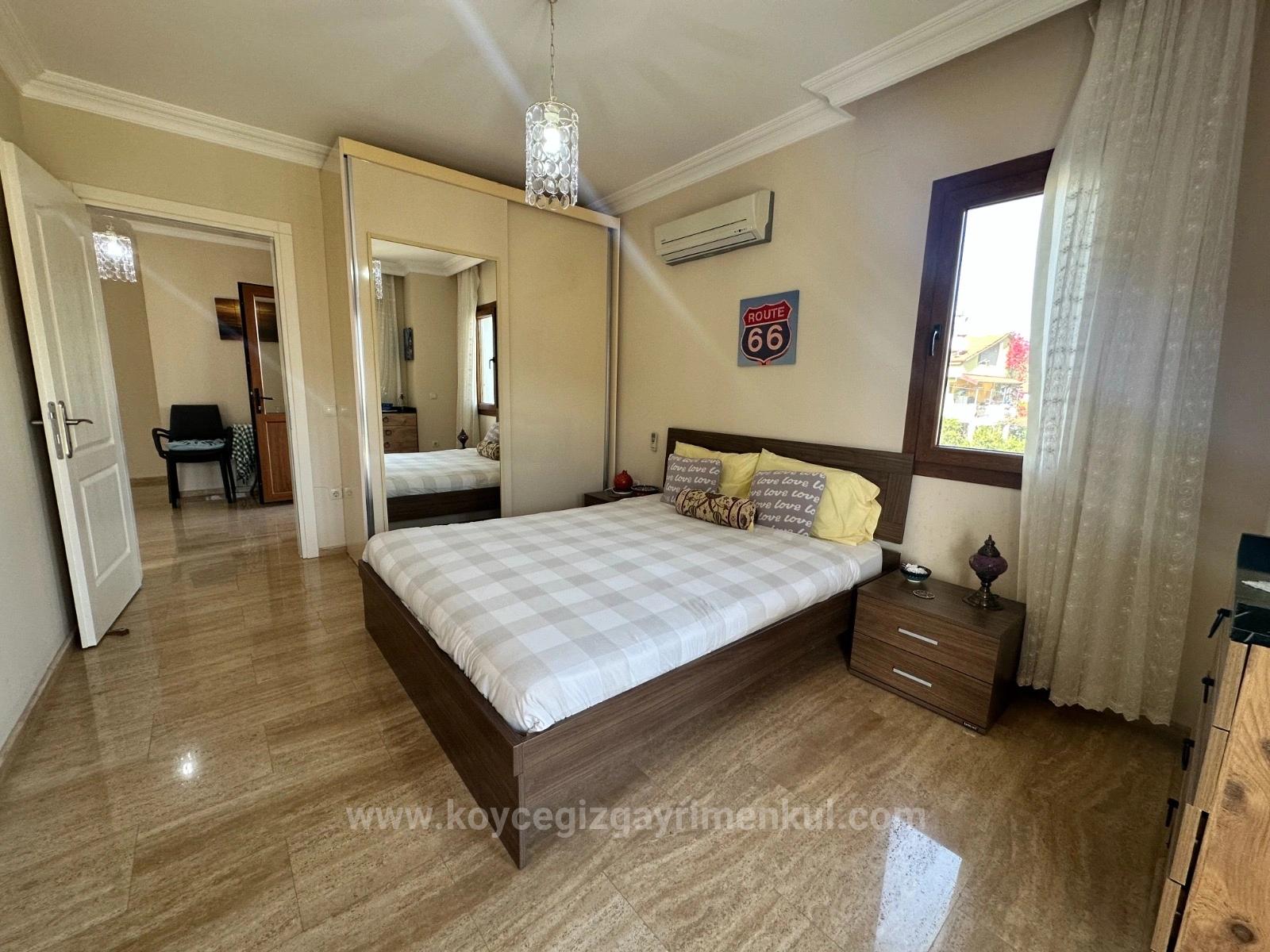 A villa on a 500m2 plot is for sale on a corner near the center of Dalyan. It has 4 bedrooms, 1 living room, open kitchen, 2 shared bathrooms and 1 en-suite bathroom. There is a bedroom on the ground floor. There is a detached outdoor swimming pool and barbecue. Every room is air conditioned. It is fully furnished and has a fireplace. It is within walking distance to shopping markets and the neighborhood market. The price of the villa, which is 10km from Iztuzu Beach and 25km from the airport: 410,000 GBP