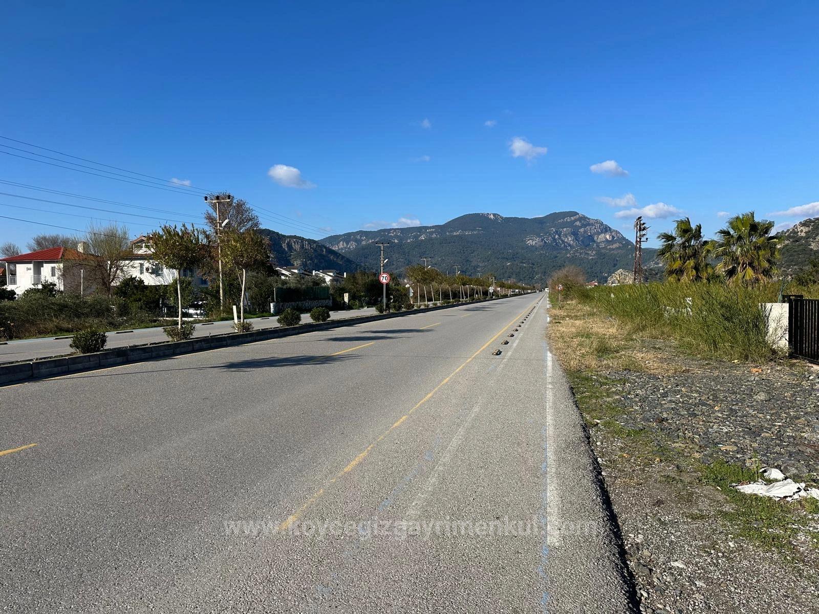 A 5,111 m2 corner plot on the main road in Dalyan is for sale. It has an 85-meter road frontage. There are no problems with road access, water, electricity, or telephone. There is a temporary zoning plan revision underway in the area. In the previous, cancelled zoning plan, this area was designated as a 20% commercial zone. The land, where planning work is ongoing, is suitable for future investment. There are existing commercial businesses in the vicinity. Once the plan is updated, multi-purpose businesses, residences, etc., can be built. The land is 1.5 km from Dalyan center, 25 km from Dalaman Airport, and 10 km from Iztuzu Beach. The price is: 1,250,000 EURO
