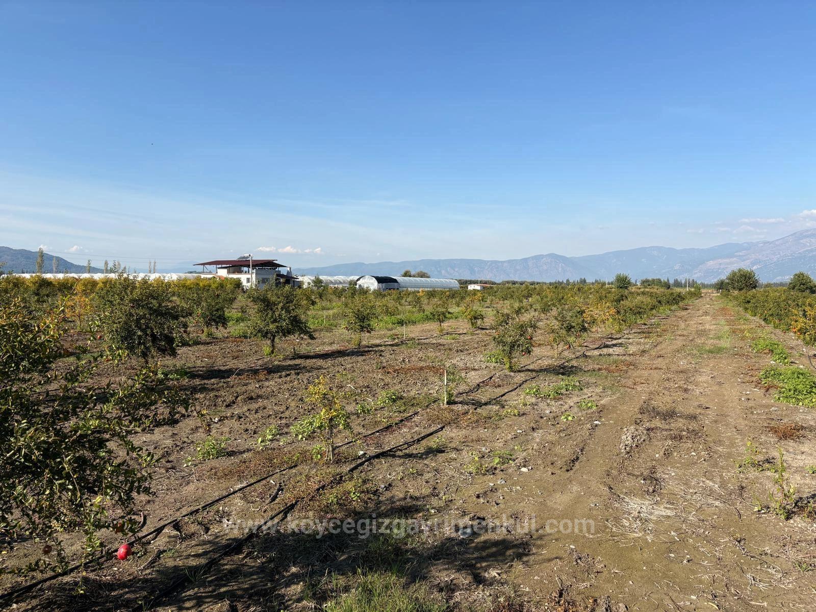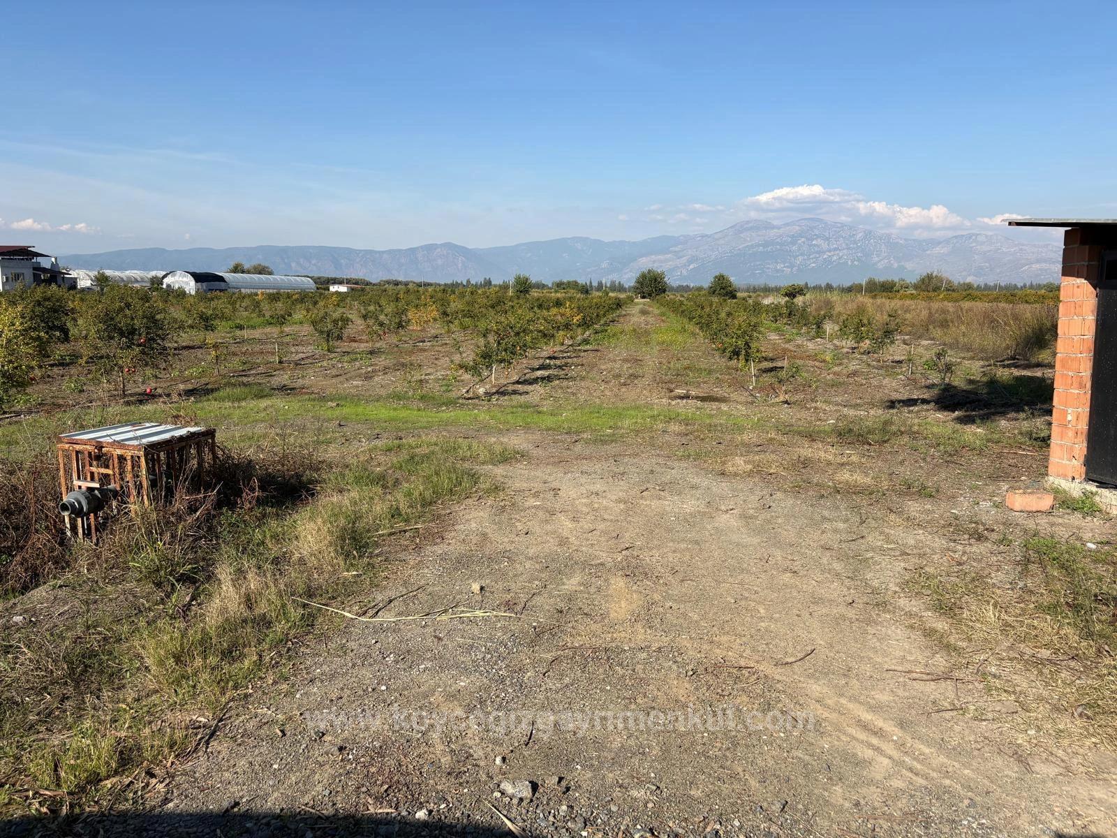 В Эскикёе продаётся участок общей площадью 21 500 м2, состоящий из двух смежных участков площадью 11 262 + 10 238 м2. На участке растут двухлетние гранатовые деревья. Нет проблем с дорогой, водой, электричеством и телефонной связью. На участке есть электричество и глубокая артезианская скважина. Система орошения капельная. К участку проложена кадастровая дорога. Вокруг расположены населённые пункты. Стоимость участка, расположенного в 3 км от Даляна, в 10 км от Ортаджи, в 13 км от пляжа Изтузу и в 25 км от аэропорта: 37 500 000 турецких лир
