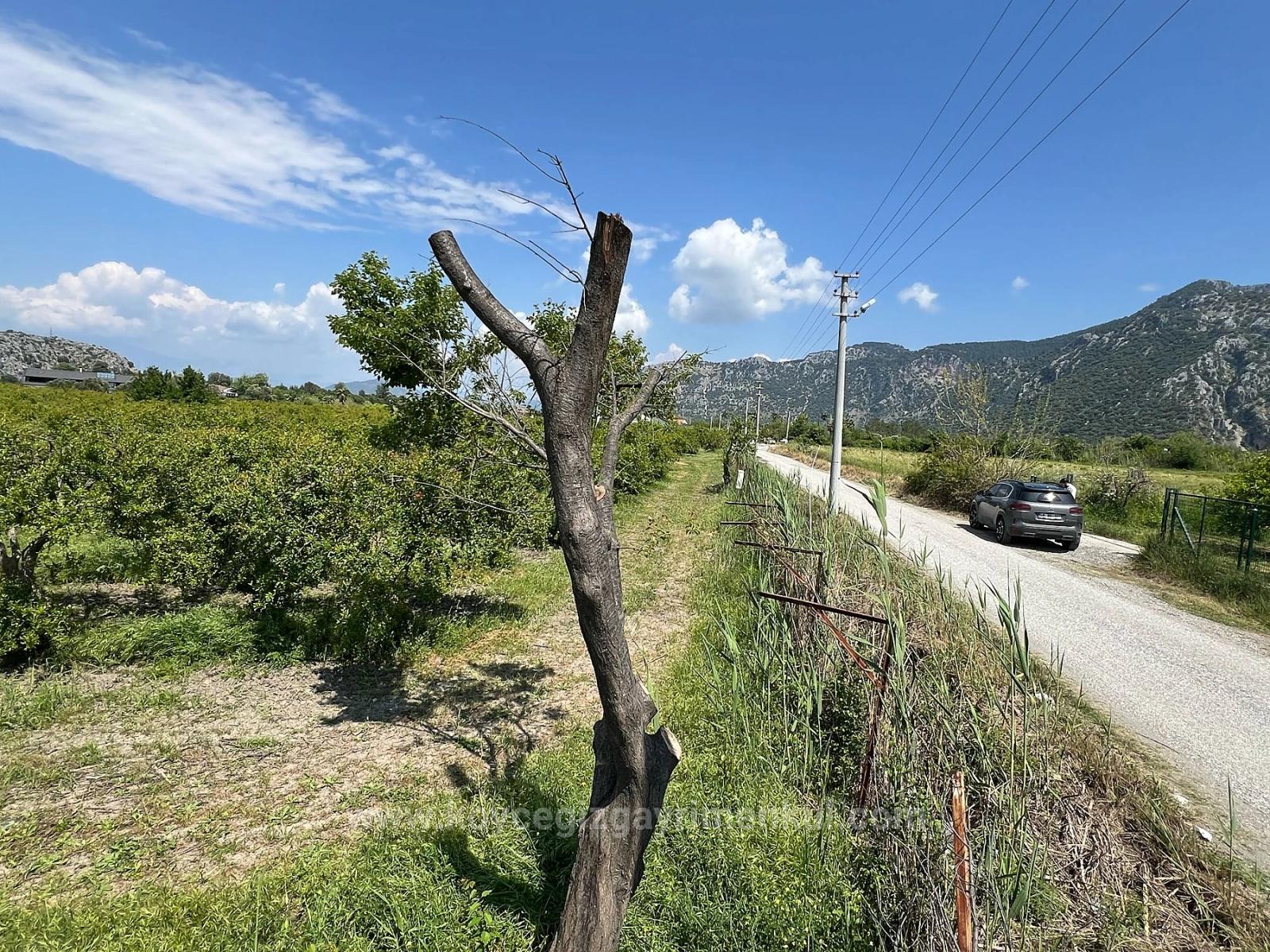 В районе Дальян Мараш, недалеко от канала, продается земельный участок площадью 5100 м2 с 5% жилой застройкой и разрешением на строительство двухэтажного здания. Проблем с подъездными путями, водоснабжением, электричеством и телефонной связью нет. Участок окружен элитными зданиями и находится в престижном районе. На участке растут гранатовые деревья. Открывается вид на природу и королевские гробницы. Участок расположен в 1 км от центра Дальяна, в 8 км от пляжа Истузу и в 25 км от аэропорта. Цена: 37 000 000 турецких лир.
