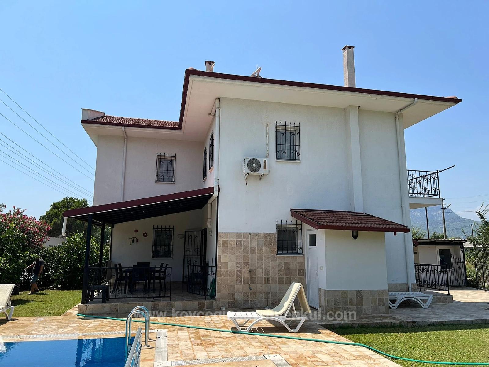 Dalyan'da köşebaşı 600m2 arsa içerisinde 3+1 havuzlu villa satılıktır. Giriş katında salon açık mutfak, lavabo ve wc ikinci katta ise 3 yatak odası, 1 ortak kullanımlı banyo vardır. 1 yatak odası da ebeveyn banyoludur. Her oda klimalıdır. Isı pompalı kalorifer sistemi bulunmaktadır. Full eşyalıdır. Müstakil girişli olup bahçesinde depo, lavabo-wc ve kapalı otopark yeri vardır. Çocuk havuzu mevcuttur.