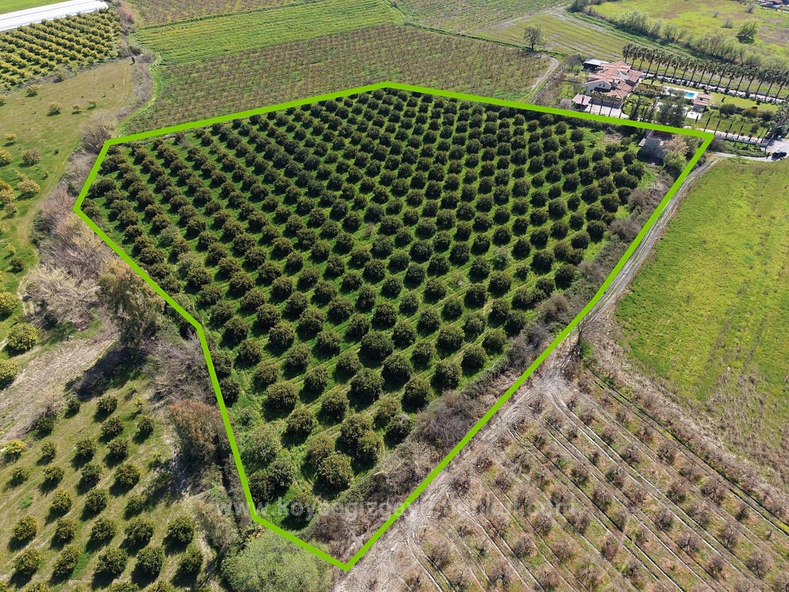 Dalyan merkeze yakın 17.550m2 narenciye bahçesi satılıktır. İçerisinde yaklaşık 200m2 yapı kayıt belgeli bina bulunmaktadır. Yol, su, elektrik, telefon sorunu yoktur. Yıllık meyve getirisi 60-70 tona yakındır. Etrafında yapılaşmalar mevcuttur. Bina tadilat ruhsatı ile düzenlenebilir. Dalyan merkeze 2 km, İztuzu Plajı'na 12 km, havaalanına 25 km mesafesi olan bahçenin fiyatı: 1.650.000 Dolar
